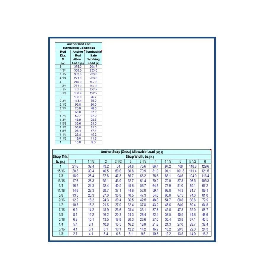 5. This program permits the user to utilize either steel tension straps or threaded rods with turnbuckles to secure the tank to the foundation. Note: if turnbuckles are used, then they will control the required threaded rod size.